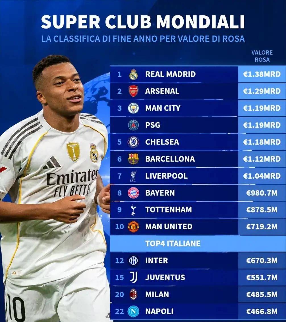 4.855亿欧元!AC米兰强势复苏进全球前20,意甲传统豪门却估值下滑